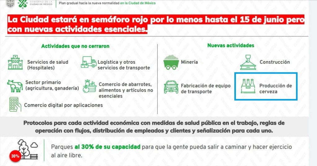 Para no hacer el cuento largo, la industria cervecera fue declarada como no esencial. Y aunque esto caló hondo en gran parte de la población, fue cuestión de tiempo para que las compañías que nos ofrecen esa bebida que tanto nos gusta reanudaran actividades. No me malinterpreten, estoy a favor de acatar las medidas pertinentes por la pandemia; pero, se veía venir la decisión de reactivar esa producción. La industria cervecera representa un gran pilar en la economía del país, que además de no presentar un crecimiento importante desde hace tiempo, estaba parada, atada de manos, y la cerveza podía reducir el impacto, pues los ingresos que se originan son por partida doble al ser México uno de los países con mayor consumo y exportación de esta bebida.